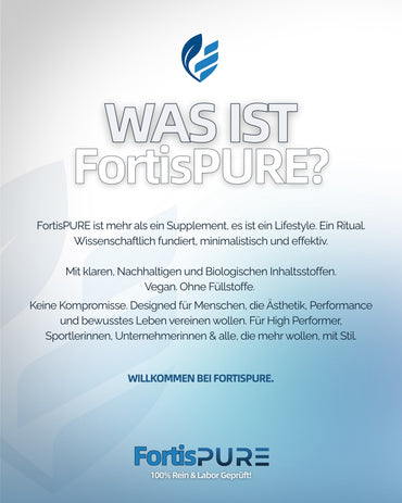 FortisPURE ist eine Premium Marke, die sich auf die Herstellung hochwertiger Nahrungsergänzungsmittel spezialisiert hat, die einen aktiven und gesunden Lebensstil unterstützen. Mit dem Fokus auf Transparenz, Reinheit und Wirksamkeit kombiniert FortisPURE wissenschaftlich fundierte Inhaltsstoffe mit rein pflanzlichen Formulierungen. Jedes Produkt wird sorgfältig entwickelt und unter strengen Qualitätsstandards in der Europäischen Union hergestellt, um maximale Sicherheit und Leistung zu gewährleisten.