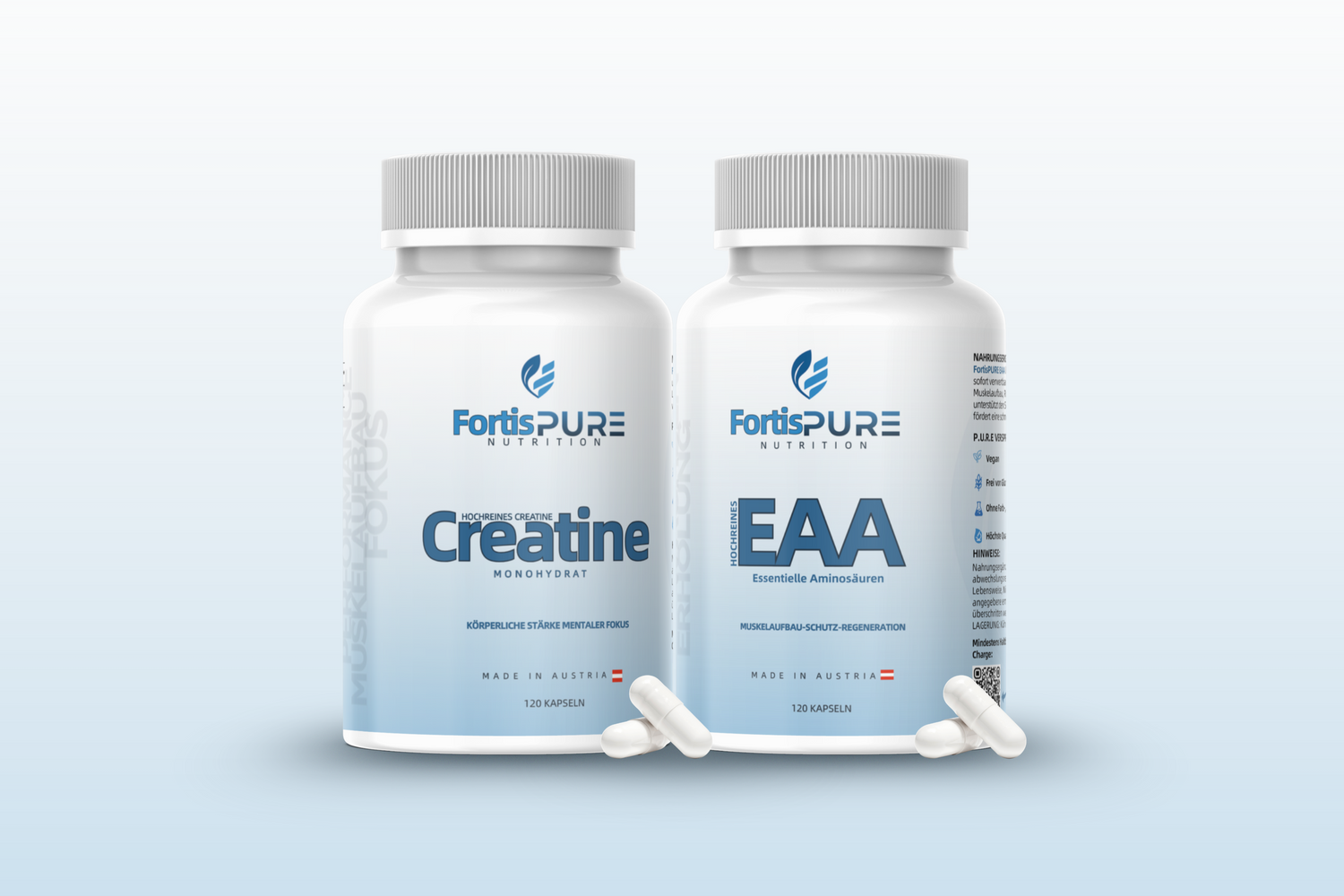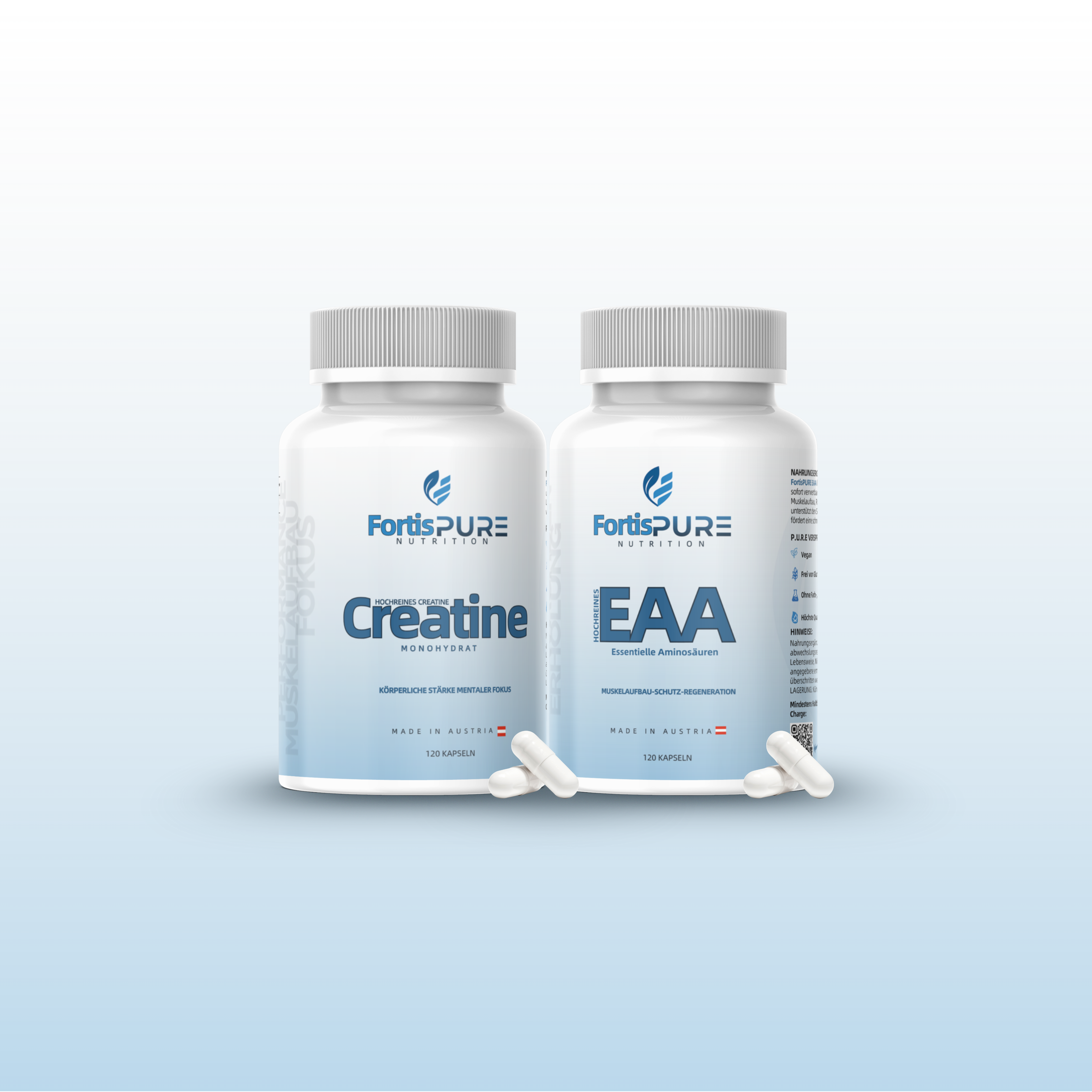EAA + Creatine sind das perfekte Duo für ambitionierte Sportler und gesundheitsbewusste Menschen. Sie liefern Energie, Schutz und Aufbaukraft – und unterstützen dich dabei, dein volles Potenzial im Training und Alltag auszuschöpfen.