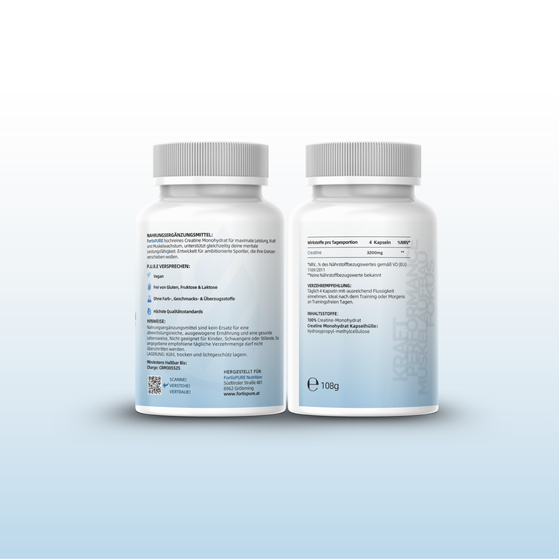FortisPURE Creatine + EAA die smarte Energie- und Proteinquelle in Kapselform mit reinem Creatine-Monohydrat und alle 8 essenziellen Aminosäuren im optimalen Verhältnis – für maximale Leistungsfähigkeit, Muskelschutz und eine reibungslose Aufnahme, ohne deine Verdauungs- oder Entgiftungsorgane unnötig zu belasten. Jede Dosis liefert hochreines Creatine für mehr Kraft und mentale Power sowie Aminosäuren in freier Form, die dein Körper sofort verwerten kann – vergleichbar mit ca. 15 g hochwertigem Protein. Die ideale Basis für Muskelaufbau, gesunde Gewebestärkung, Knochenaufbau und verbesserte Regeneration.
